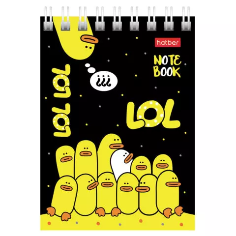 Блокнот МАЛЫЙ ФОРМАТ (75х105 мм) А7, 60 л., гребень, картон, клетка, HATBER "Happy time", 60Б7В1гр