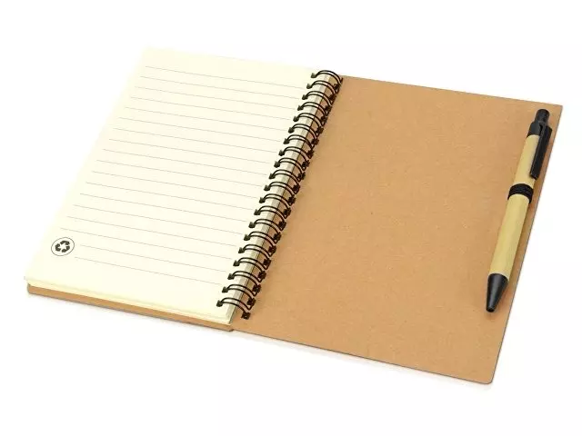 Блокнот Priestly с ручкой. Блокнот формата с 60 листами линованной бумаги вторичной переработки и ручкой под цвет блокнота. На обложку блокнота и ручку можно нанести яркий логотип.
