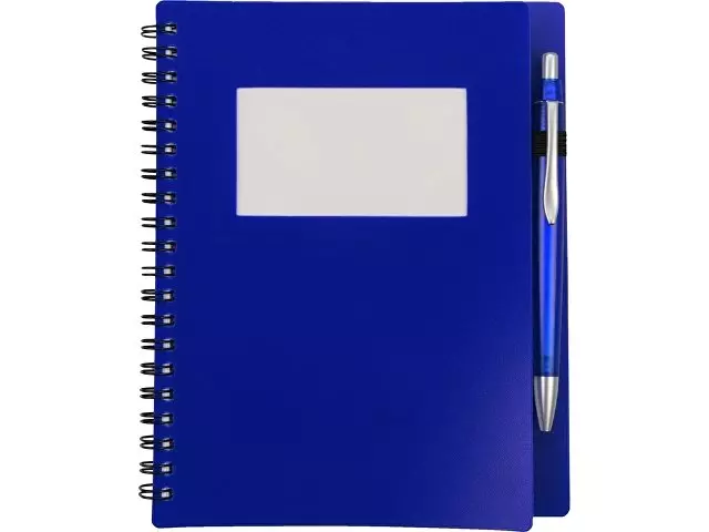 Блокнот «Контакт» в полипропиленовой обложке переплетен на пружине. В обложке блокнота предусмотрено окошко, в которое можно поместить визитную карточку или полиграфическую вставку. В комплекте с блокнотом идет ручка, которая вставляется в петельку сбоку. Размер окошка внешний 8,4 х 4,8 см, внутренний 10 х 6,5 см.
