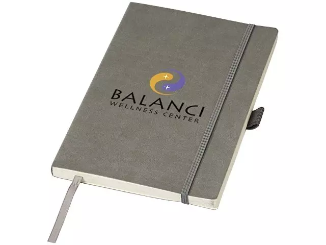 Блокнот Revello. Мягкий на ощупь, гибкий блокнот (размер А5 для ориентации) со встроенной эластичной застежкой, закладкой, петелькой для ручки и кармашка для документов на внутреннем форзаце сзади. 80 листов кремовой линованной бумаги (80г/м2). Упакован в черную коробку-рукав. Кожа ПУ.