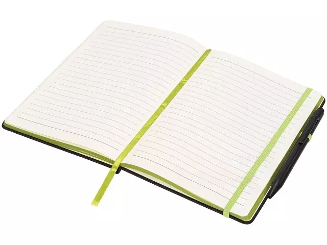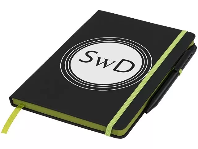Блокнот Noir Edge среднего размера. Современный и стильный черный блокнот с мягкой на ощупь обложкой. Цветной край и цветные маркеры страниц, застежка-держатель для ручки. Предлагается с черной шариковой ручкой-стилусом. Блокнот содержит 96 листов линованной бумаги (70 г/м²) кремового цвета. ПУ.
