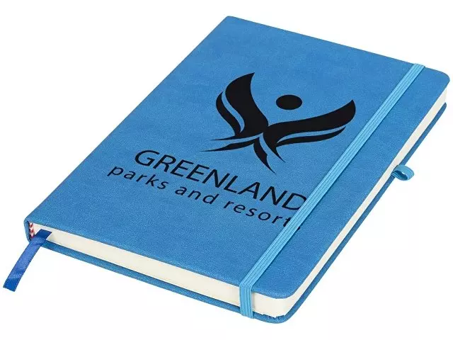 Блокнот Rivista среднего размера. Блокнот Rivista отличается стильным современным дизайном с высококачественной обложкой, идеально подходящей для нанесения логотипа и информации вашей компании. Предлагаются современные цвета. Также предусмотрена эластичная застежка, держатель для ручки, лента-закладка и внутренний кармашек на задней стороне обложки. Содержит 128 листов линованной бумаги (70 г/м²) кремового цвета. ПУ.