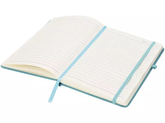 Блокнот Rivista среднего размера. Блокнот Rivista отличается стильным современным дизайном с высококачественной обложкой, идеально подходящей для нанесения логотипа и информации вашей компании. Предлагаются современные цвета. Также предусмотрена эластичная застежка, держатель для ручки, лента-закладка и внутренний кармашек на задней стороне обложки. Содержит 128 листов линованной бумаги (70 г/м²) кремового цвета. ПУ.