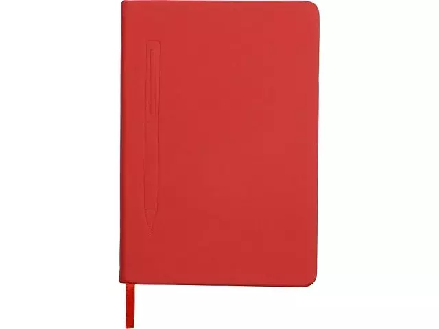 Блокнот формата А5 в твердой обложке со скруглёнными углами и блоком в линейку на 80 листов. Благодаря скрытой магнитной ленте на блокноте можно легко и надежно закрепить металлическую ручку. Зона с магнитом обозначена тиснением в форме ручки.