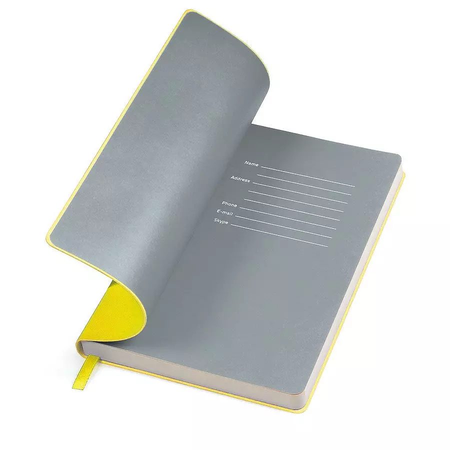 Бизнес-блокнот "Funky", 130*210 мм, голубой, желтый форзац, мягкая обложка, блок-линейка