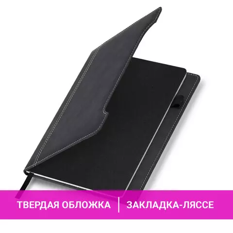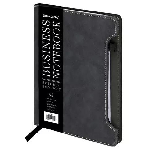Блокнот А5 165x218мм BRAUBERG Perfect, под кожу софт-тач, держатель для ручки, 80 листов, клетка, черный, 116614