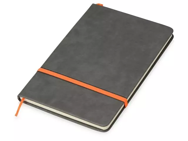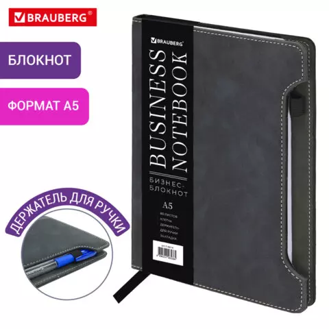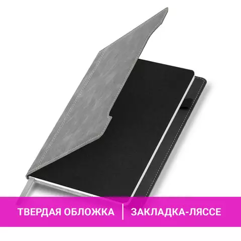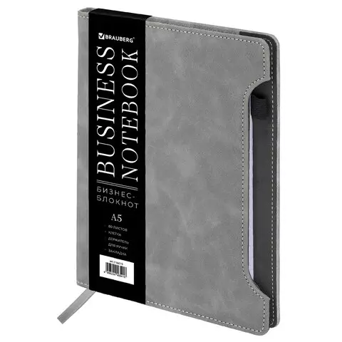 Блокнот А5 165x218мм BRAUBERG Perfect, под кожу софт-тач, держатель для ручки, 80 листов, клетка, серый, 116619