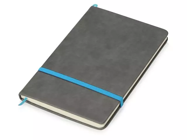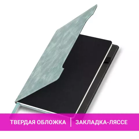 Блокнот А5 138x213мм BRAUBERG Velvet, резинка, держатель, 80л, клетка, серо-голубой, 116241