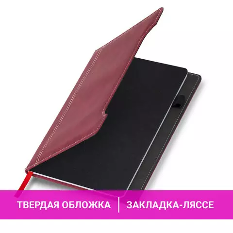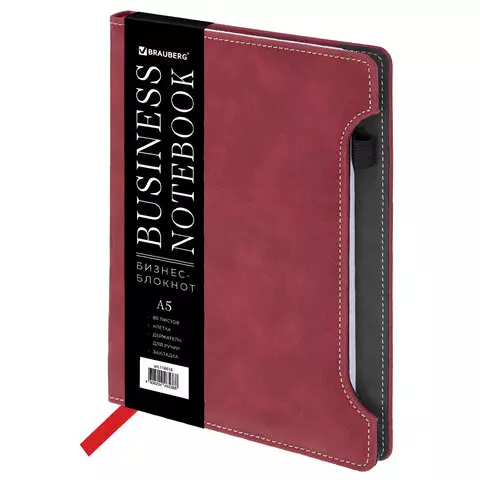 Блокнот А5 165x218мм BRAUBERG Perfect, под кожу софт-тач, держатель для ручки, 80 листов, клетка, бордовый, 116616