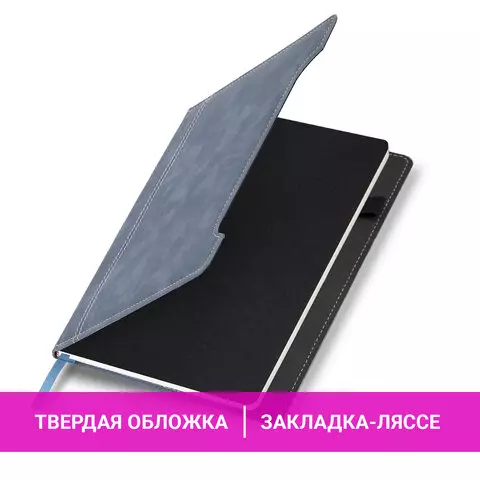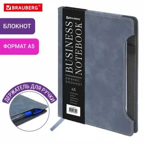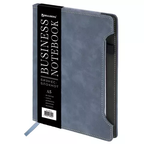 Блокнот А5 165x218мм BRAUBERG Perfect, под кожу софт-тач, держатель для ручки, 80 листов, клетка, серо-синий, 116618