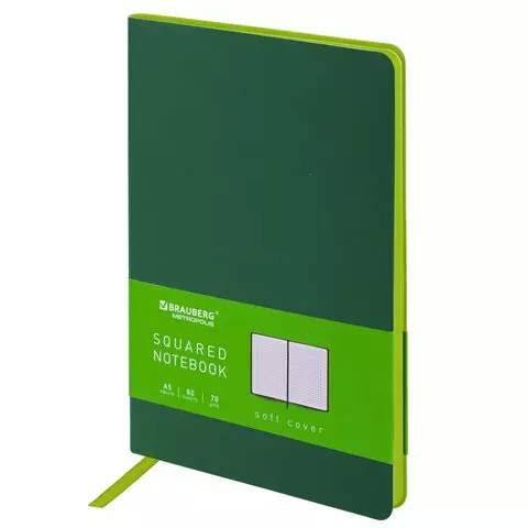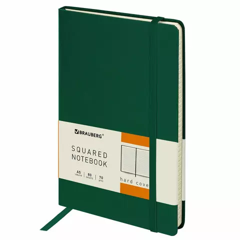 Блокнот в клетку с резинкой А5 (148x218 мм), 80 л., балакрон зеленый BRAUBERG "Metropolis", 111583