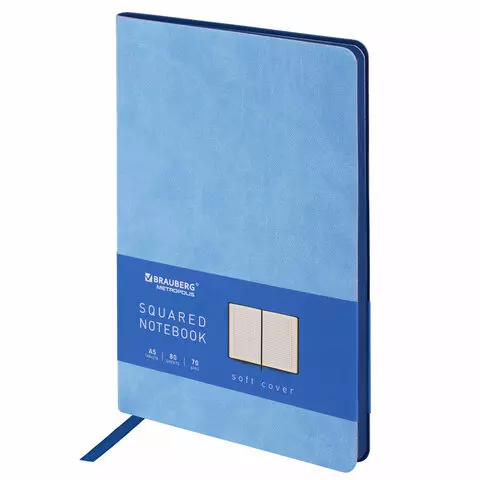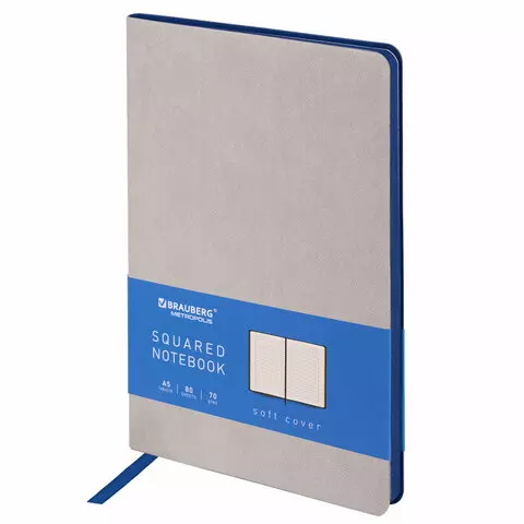Блокнот в клетку с резинкой А5 (148x218 мм), 80 л., балакрон синий BRAUBERG "Metropolis", 111582