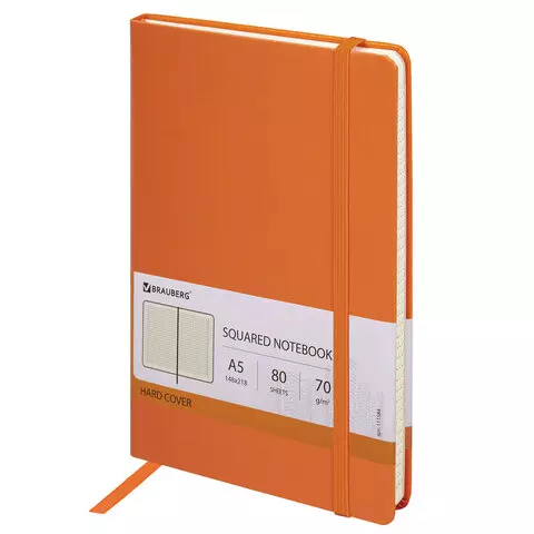 Блокнот в клетку с резинкой А5 (148x218 мм), 80 л., балакрон оранжевый BRAUBERG "Metropolis", 111584