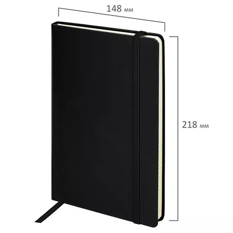 Блокнот в клетку с резинкой А5 (148x218 мм), 80 л., балакрон черный BRAUBERG "Metropolis", 111585
