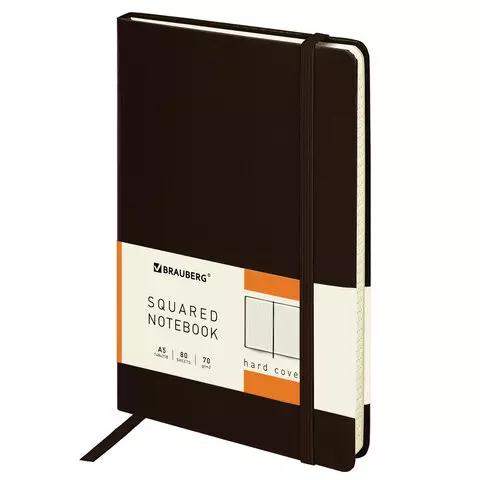 Блокнот в клетку с резинкой А5 (148x218 мм), 80 л., балакрон коричневый BRAUBERG "Metropolis", 111586