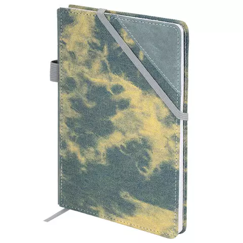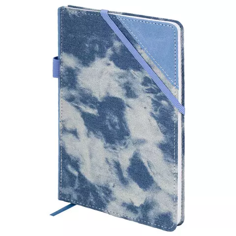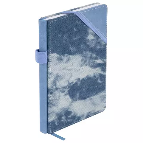 Блокнот А5 135x210мм BRAUBERG Denim, ткань/экокожа, резинка, держатель, 80л клетка, синий, 117139