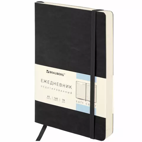 Ежедневник недатированный А5 (138х213 мм) BRAUBERG "Stylish", кожзам, гибкий, 160 л., черный, 126224