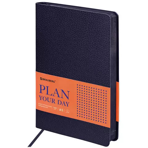 Ежедневник недатированный А5 (138х213 мм) BRAUBERG "Stylish", кожзам, гибкий, 160 л., синий, 126223