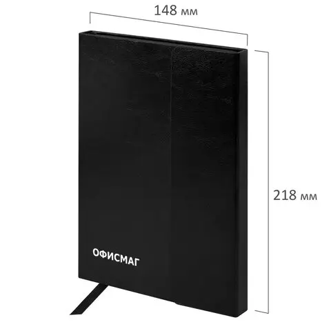 Ежедневник недатированный А5 (148x218 мм), ОФИСМАГ, под кожу, магнитный клапан, 160 л., черный, 115082