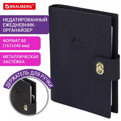Ежедневник-органайзер недатированный B5 167х240мм BRAUBERG "Nova", под кожу, 160л, черный, 116204