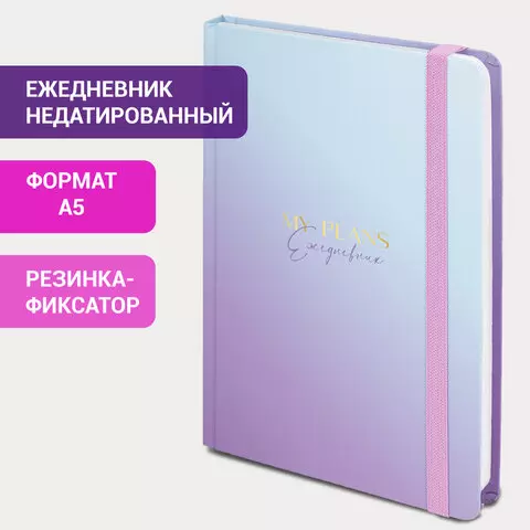 Ежедневник недатированный с резинкой А5 (145х203 мм), BRAUBERG, твердый, 128 л., "Градиент", 114557