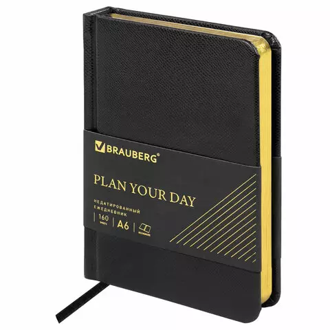 Ежедневник недатированный А5 138х213мм BRAUBERG Base, под кожу, 160л, черный, 116255
