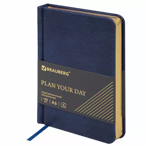 Ежедневник недатированный В6 130х185мм BRAUBERG "Gleam", под кожу, 160л, голубой, 116220