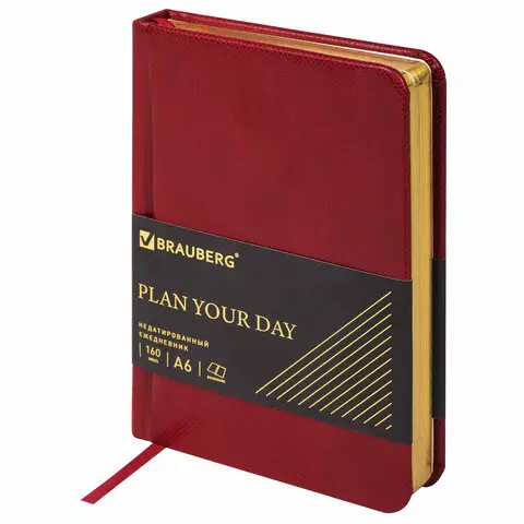 Ежедневник недатированный А5 138х213мм BRAUBERG "BeStyle", под кожу, резинка, держатель, 160л, красный, 116217