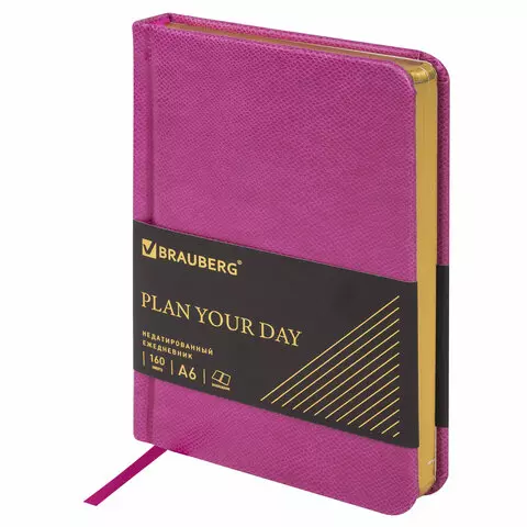 Ежедневник недатированный В6 130х185мм BRAUBERG "Gleam", под кожу, 160л, розовый, 116219