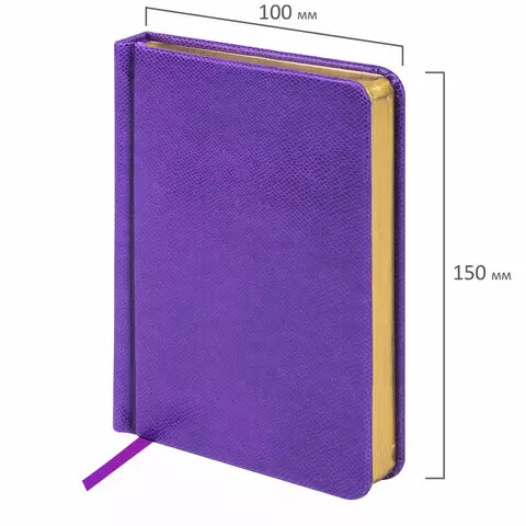 Ежедневник недатированный МАЛЫЙ ФОРМАТ 100x150 мм А6 BRAUBERG "Iguana", под кожу,160 л., сиреневый, 114470