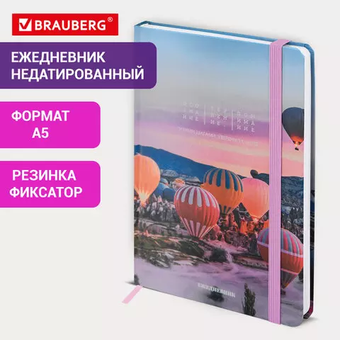 Ежедневник недатированный с резинкой А5 145х203мм, BRAUBERG, твердый, 160л, Cappadocia, 116306