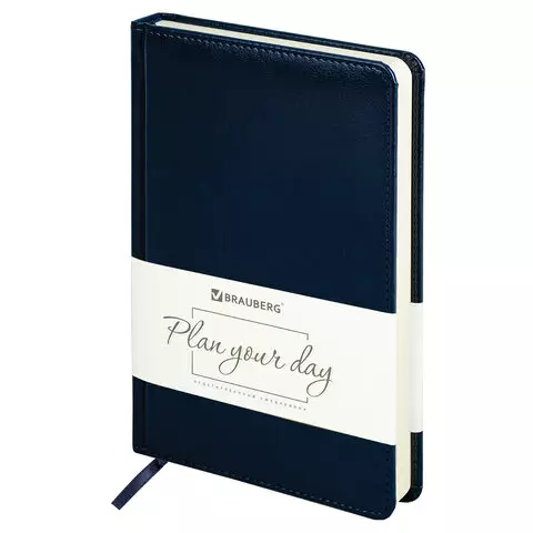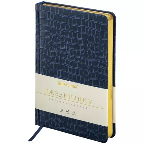 Ежедневник недатированный А5 138х213 мм BRAUBERG "Imperial" под кожу, 160 л., темно-синий, 123413