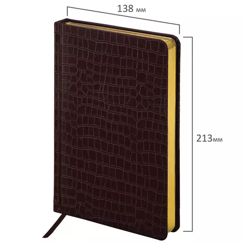 Ежедневник недатированный А5 138x213 мм BRAUBERG "Finest" под кожу, резинка, 136 л., коричневый, 111870
