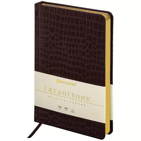 Ежедневник недатированный А5 138х213 мм BRAUBERG "Comodo" под кожу, 160 л., темно-коричневый, 123838