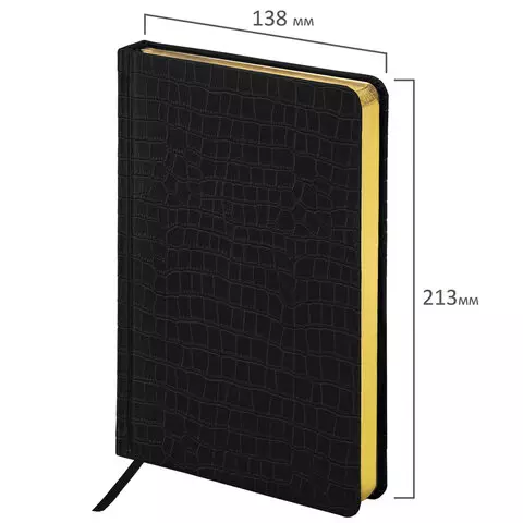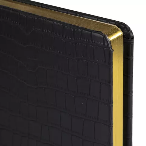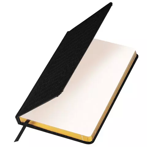 Ежедневник недатированный А5 138x213 мм BRAUBERG "Finest" под кожу, резинка, 136 л., черный, 111869