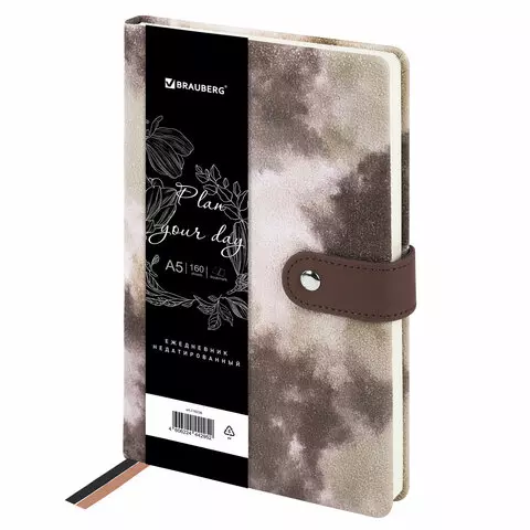 Ежедневник недатированный А5 138х213 мм BRAUBERG "Nebula", под кожу, застежка, 160 л., коричневый, 116236