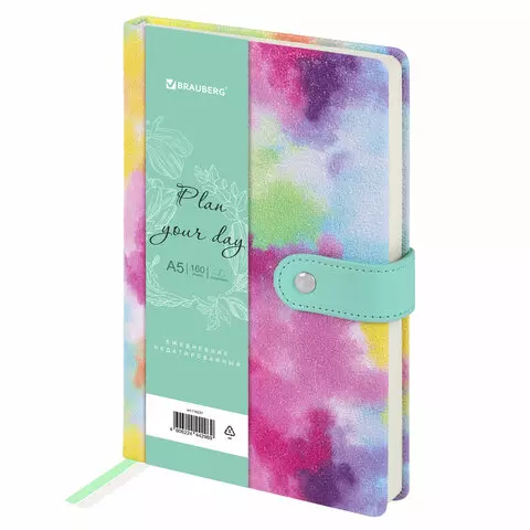 Ежедневник недатированный А5 138х213 мм BRAUBERG "Nebula", под кожу, застежка, 160 л., зелёный микс, 116237