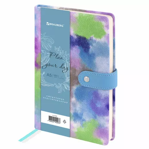 Ежедневник недатированный А5 138х213мм BRAUBERG Nebula, под кожу, застежка 160л, синий микс, 116238