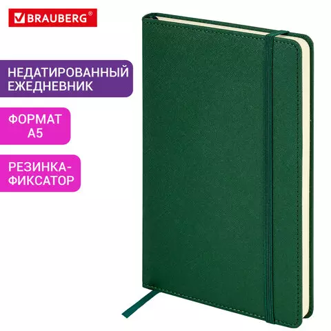 Ежедневник недатированный А5 138х213мм BRAUBERG Base, под кожу, 160л, темно-зеленый, 116257
