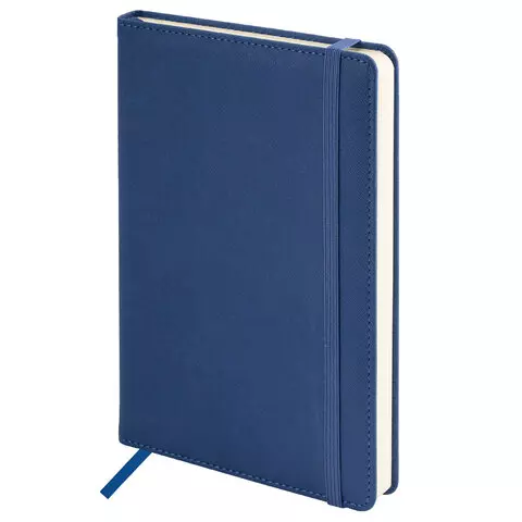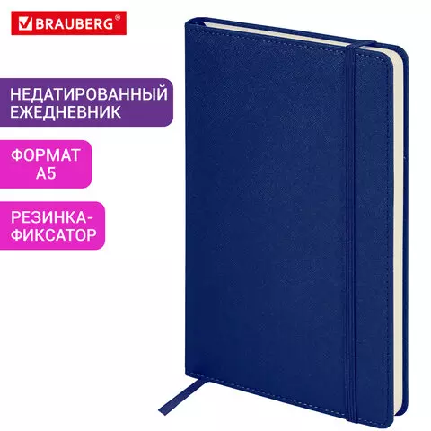 Ежедневник недатированный А5 138x213 мм BRAUBERG "Finest" под кожу, резинка, 136 л., синий, 111872