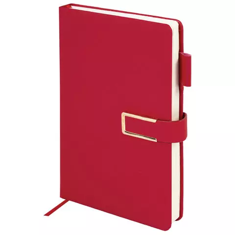 Ежедневник недатированный А5 143х210мм BRAUBERG Deluxe, под кожу, магнит 160л, красный, 117142