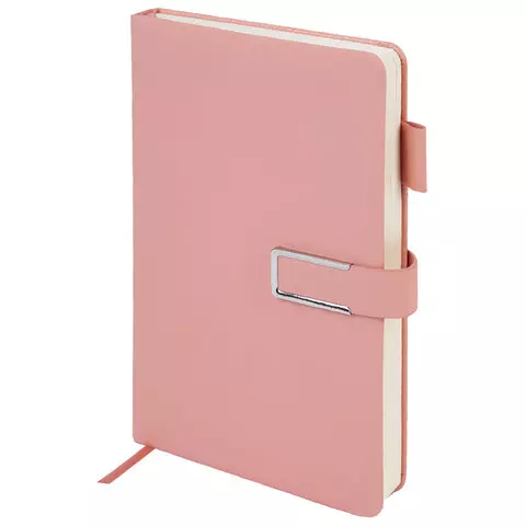 Ежедневник недатированный А5 143х210мм BRAUBERG Deluxe, под кожу, магнит 160л, розовый, 117143