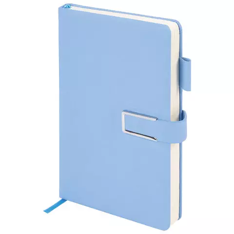 Ежедневник недатированный А5 143х210мм BRAUBERG Deluxe, под кожу, магнит 160л, голубой, 117144
