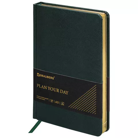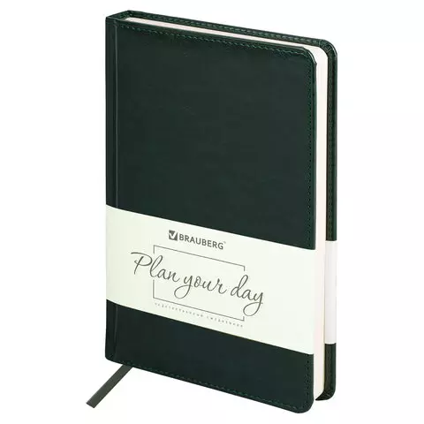 Ежедневник недатированный А5 138х213 мм BRAUBERG "Imperial" под кожу, 160 л., зеленый, 111855