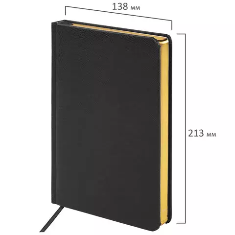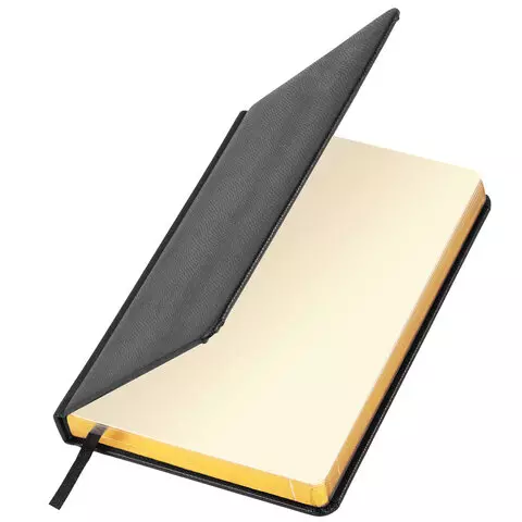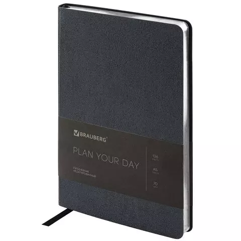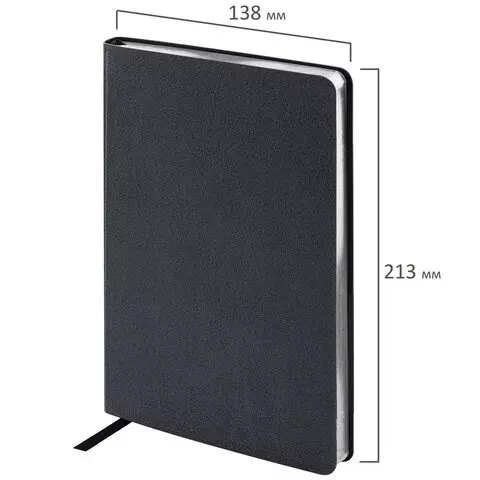 Ежедневник недатированный А5 138х213 мм BRAUBERG "Metallic", под кожу, 136 л., гибкий, черный, 113374