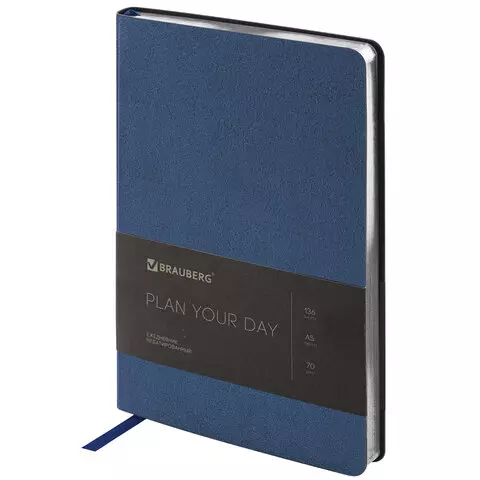 Ежедневник недатированный А5 138х213 мм BRAUBERG "Metallic", под кожу, 136 л., гибкий, синий, 113376