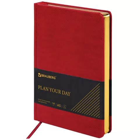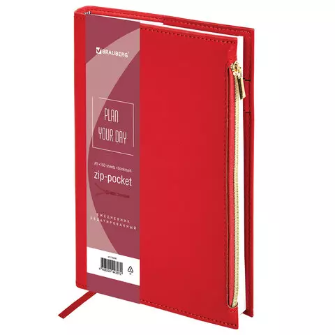 Ежедневник недатированный А5 145х220мм, BRAUBERG Zipline, под кожу, карман-молния, 160л, красный, 116248