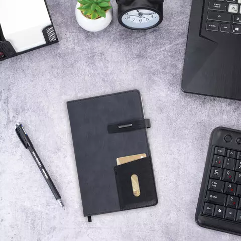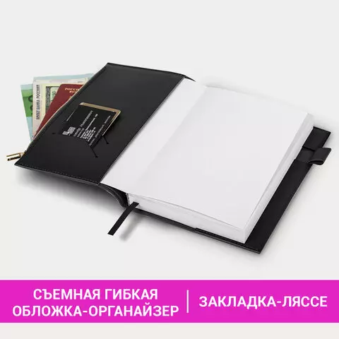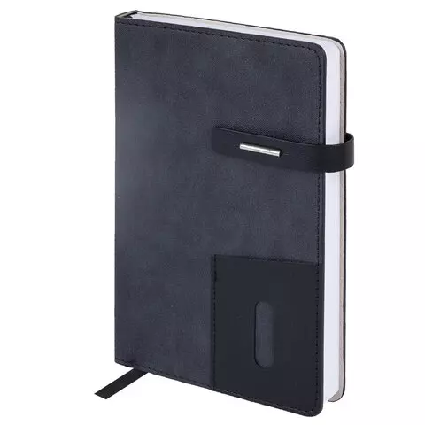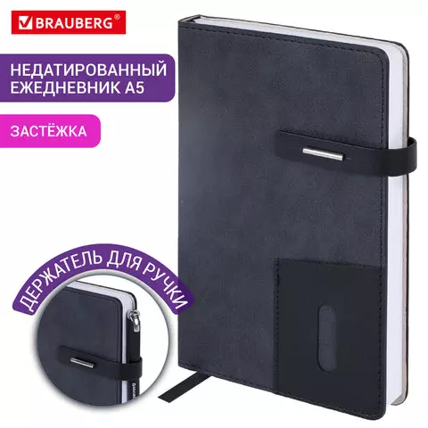Ежедневник недатированный А5 145х220мм BRAUBERG Zipline, под кожу, карман-молния, 160л, черный, 116247