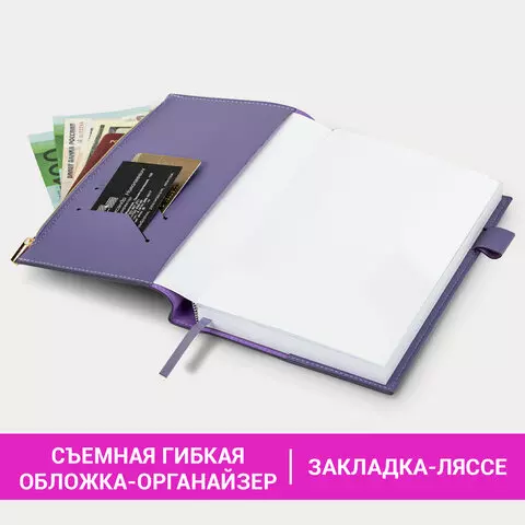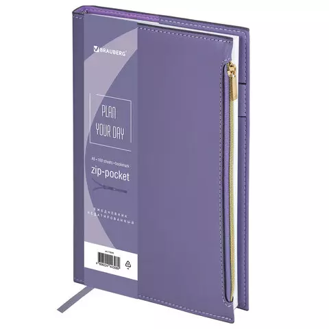 Ежедневник недатированный А5 145х220мм, BRAUBERG Zipline, под кожу, карман-молния, 160л, фиолетовый, 116249