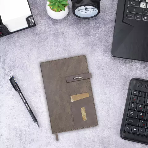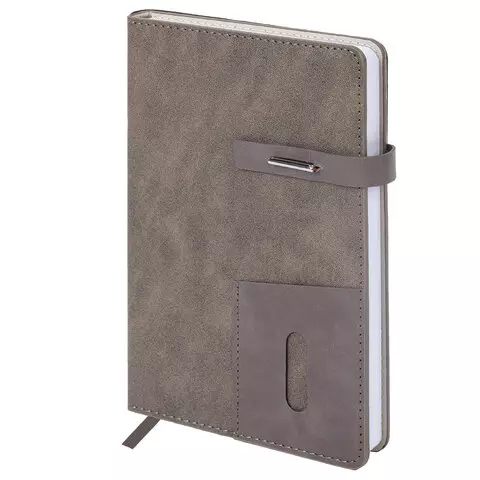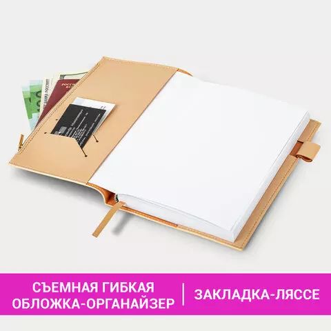 Ежедневник недатированный А5 145х220мм BRAUBERG Zipline, под кожу, карман-молния, 160л, бежевый, 116250